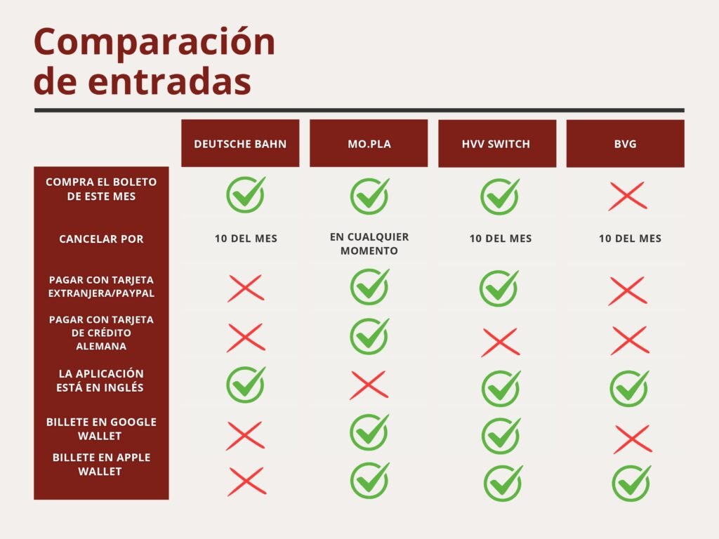 • Transporte público local (autobuses, S-Bahn, U-Bahn y tranvías)